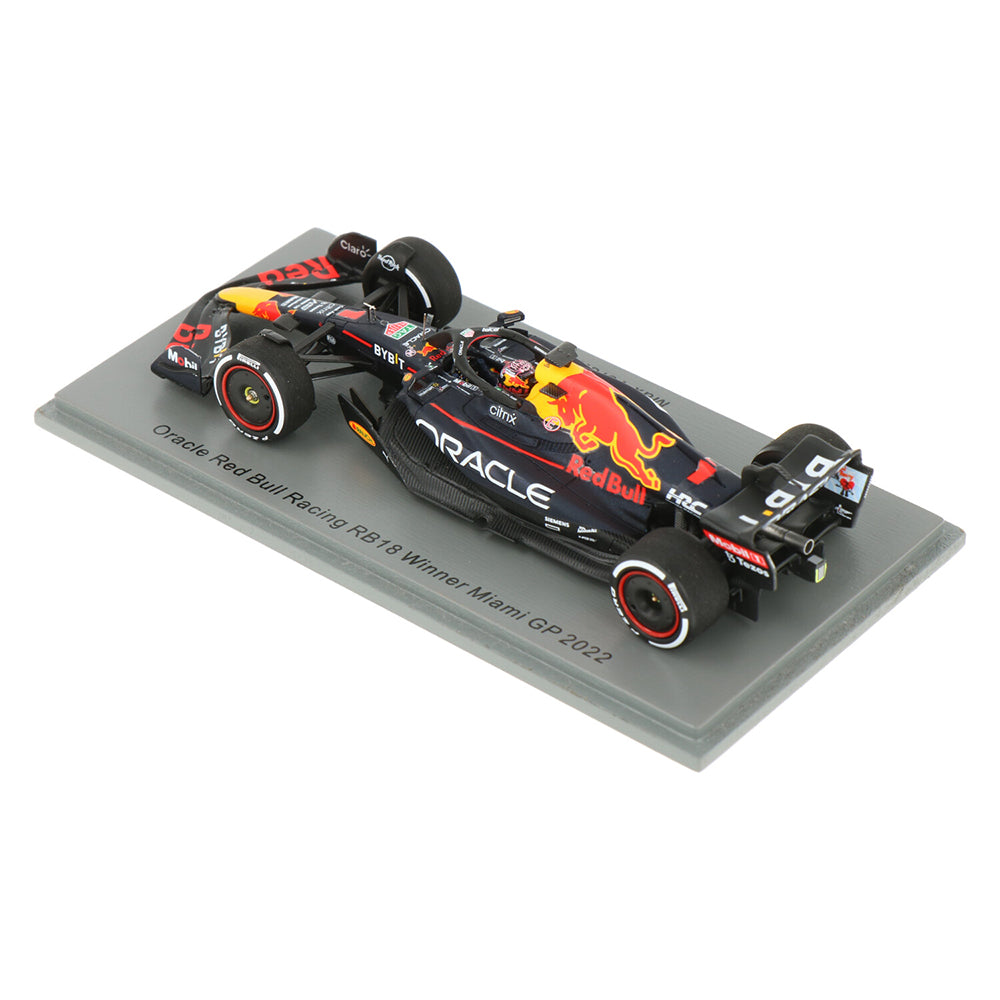 Oracle Red Bull Racing RB18 Max Verstappen #1 Miami GP Winner 2022 Produced by Spark, this is a detailed replica of the racecar driven by this superstar to win the 2022 Miami Grand Prix. Features authentic sponsor and team decals, detailed cockpit and much more. Comes mounted on descriptive base and encased in acrylic. Size: 4