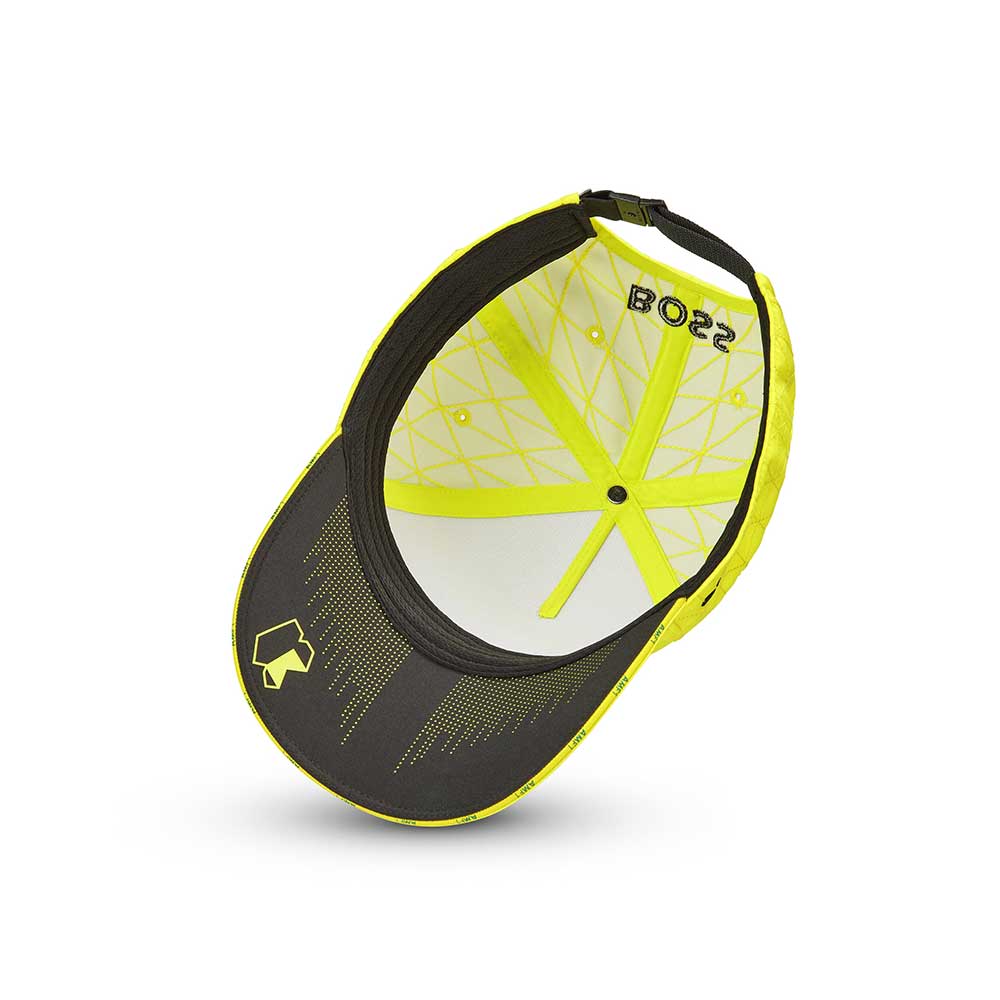 Official licensed 2024 team replica product. Fernando Alonso driver '14' logo prints on peak. HD print Aston Martin F1 Team logo. Aston Martin interior inspired quilted rear panel. Laser perforation design under peak. BOSS logo and flag label on rear. One size fits all with adjustable rear fastening.