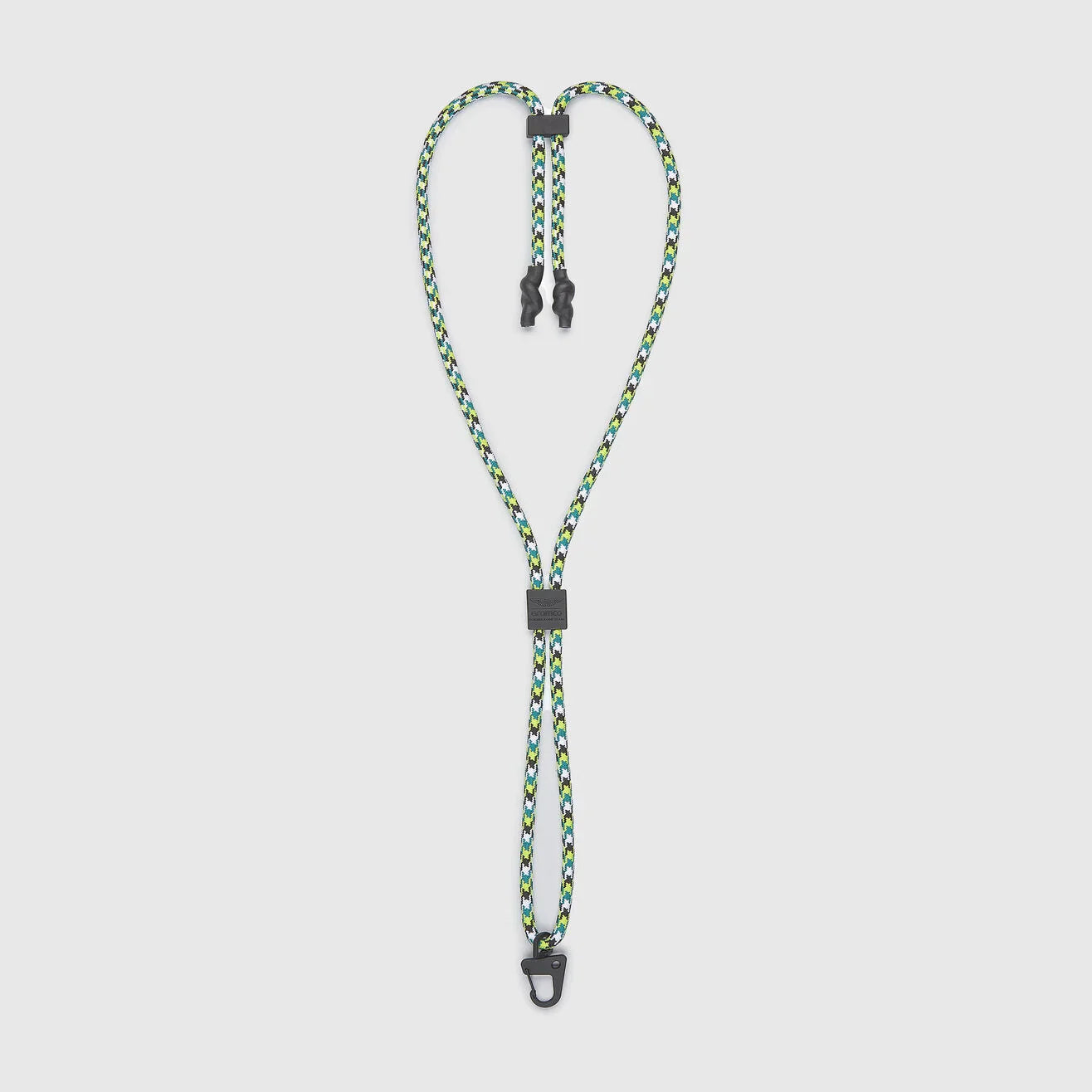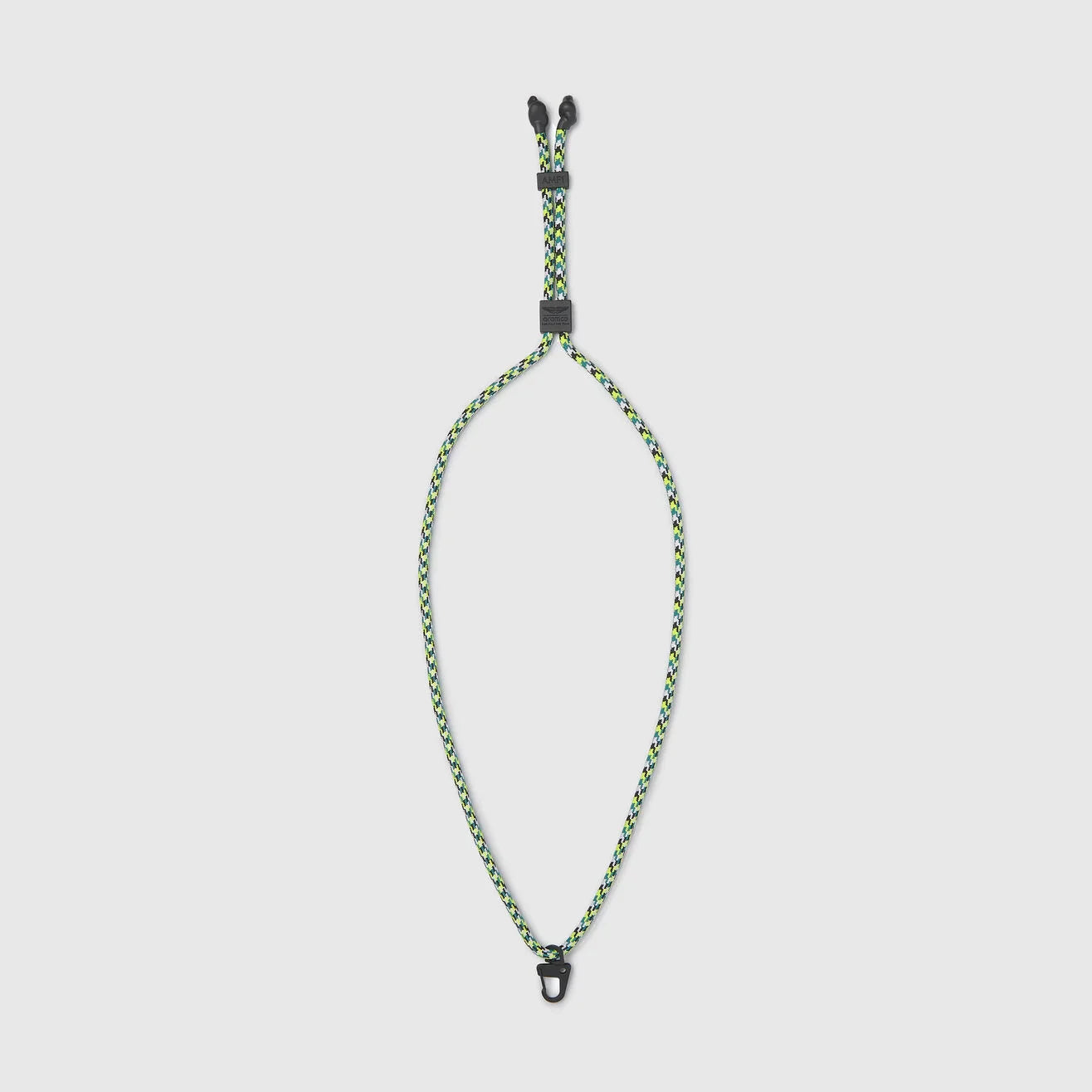 Official Aston Martin F1 Team accessory. Rubber dipped jacquard cord in team colours. Metal carabiner swivel clip.