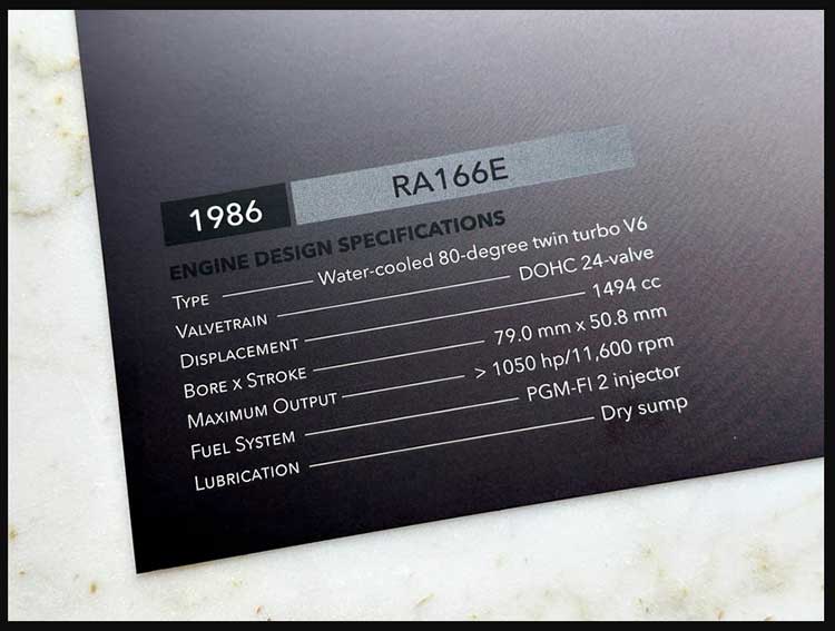 Honda V6 Turbo F1 Engine Poster Unframed, large format poster features the championship-winning, RA166E, 1500 cc, V6 turbo Honda engine. Making more than 1000 hp, this engine delivered Honda its first Formula 1 World Constructor's Championship in 1986 and both the Driver's and Constructor's Championships in 1987 and 1988 when it won 15 of 16 races. esign. Premium quality 18 x 24 print on 80 lb. satin coated cover stock. Engine specifications listed.