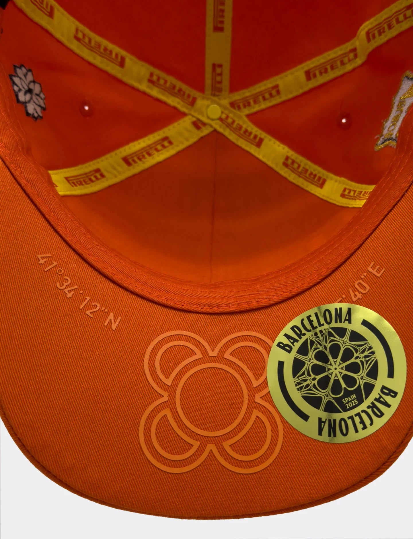 The Barcelona cap features a bold deep orange hue, inspired by the fiery energy and passion that define both the Spanish Grand Prix® and the Catalan spirit. This striking color nods to the region’s sun-soaked landscapes and the intensity of competition at the Circuit de Barcelona-Catalunya®. It’s a modern, unconventional take on podium style—confident, vibrant, and full of momentum. Gold embroidery adds a final touch of prestige, celebrating the glory of victory under the Spanish sun.