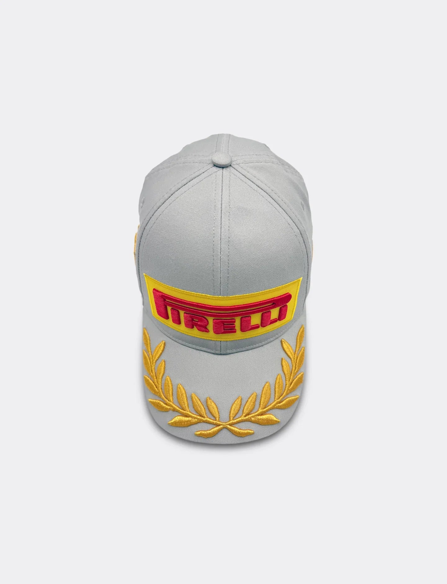 The Pirelli Podium Cap - Special Edition Silverstone celebrates the birthplace of Formula 1® with a sleek silver finish, paying tribute to both the circuit's legendary history and its cutting-edge future. Gold embellishments add a regal contrast, symbolizing the prestige of standing atop the podium of one the sport's most iconic tracks. Featuring the classic Pirelli logo embroidery, this cap fuses heritage and performance in a bold, modern statement. Designed for champions - where it all began!