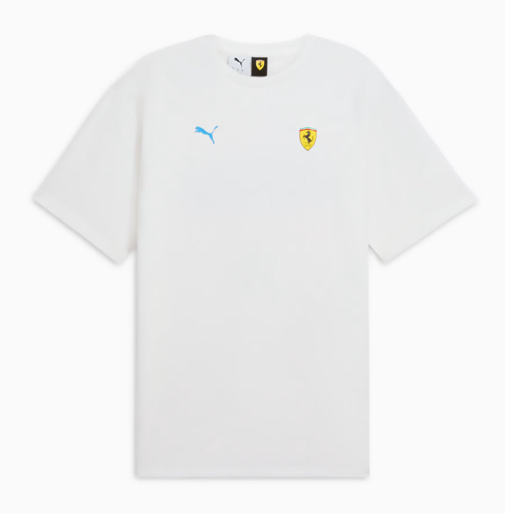 Borrowing from the world of away kits, PUMA for SCUDERIA FERRARI HP is back with a limited-edition drop in an alternative white colorway – pulled from the accent color of the 2025 car livery. Featuring replica tees and caps worn by Lewis Hamilton and Charles Leclerc, it’s made for fans who never leave the Prancing Horse at home.