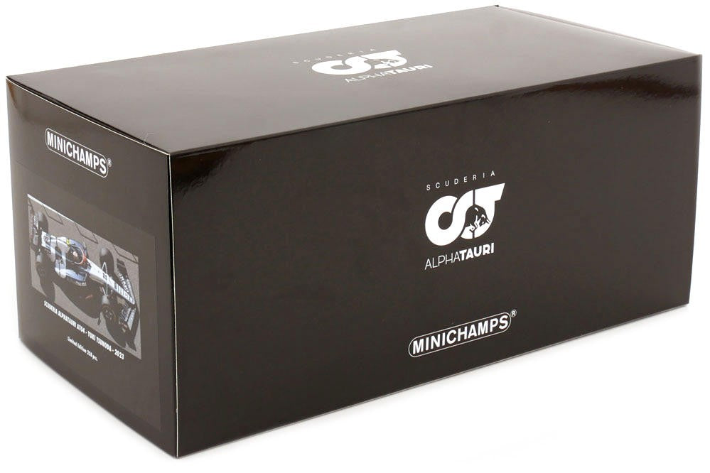 Produced by Minichamps, this is a detailed replica of the 2023 racecar driven by Yuki Tsunoda.  Features authentic sponsor and team decals, detailed cockpit, and more.