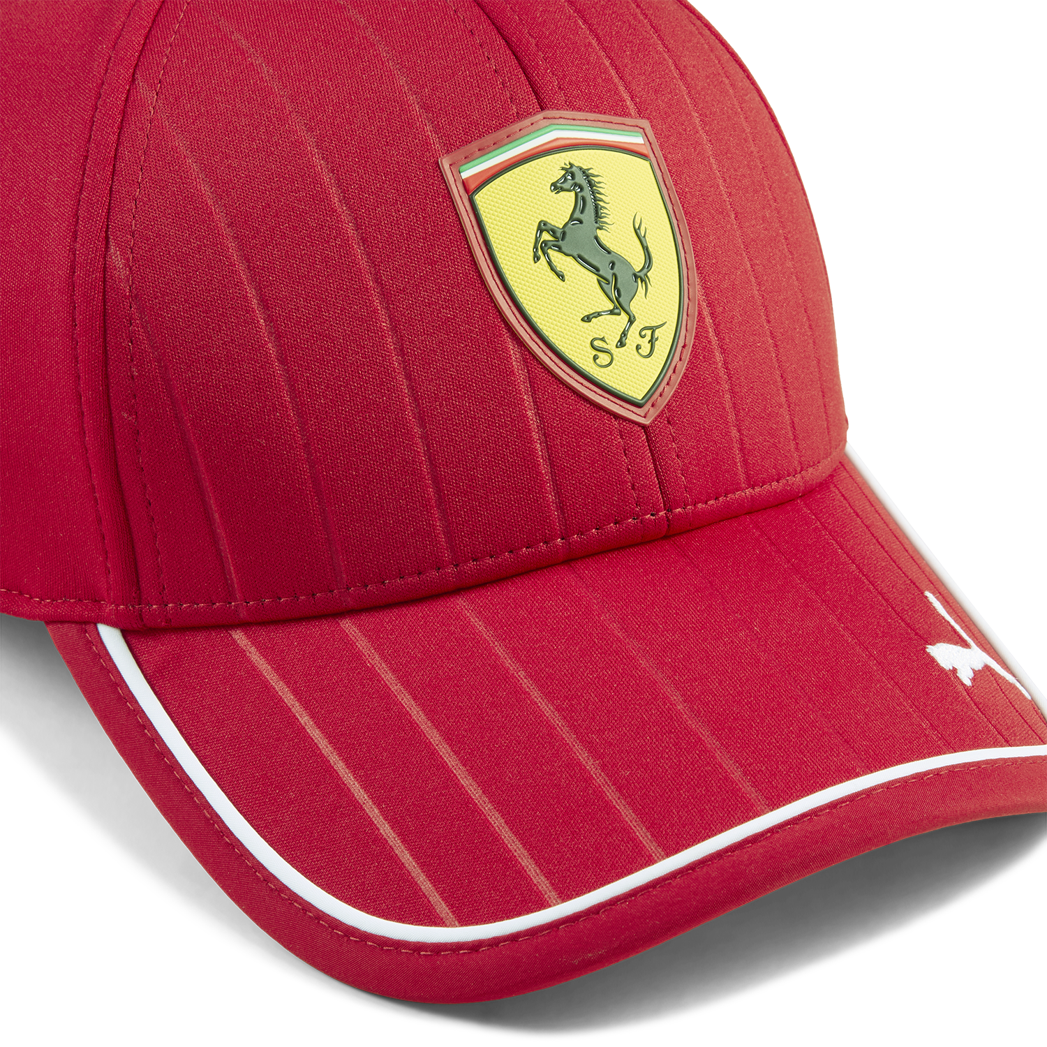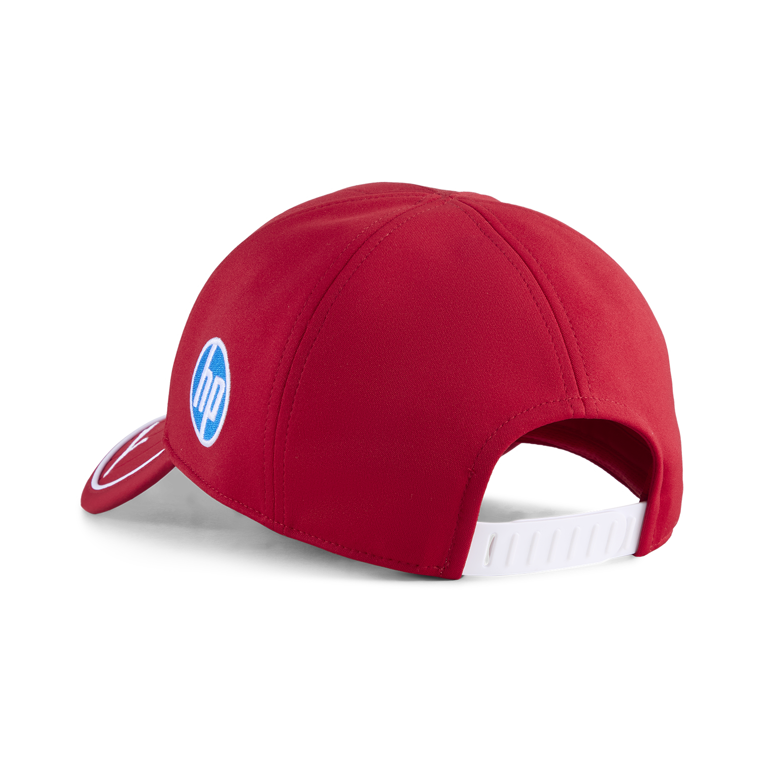 Youth version of the official 2025 Scuderia Ferrari Team Cap from PUMA, recognizable as being based on the kit worn by the team and drivers Lewis and Charles throughout the 2025 Formula 1 season. Youth sized cap in Ferrari's 2025 Scuderia Red, with all the official Ferrari and PUMA branding.