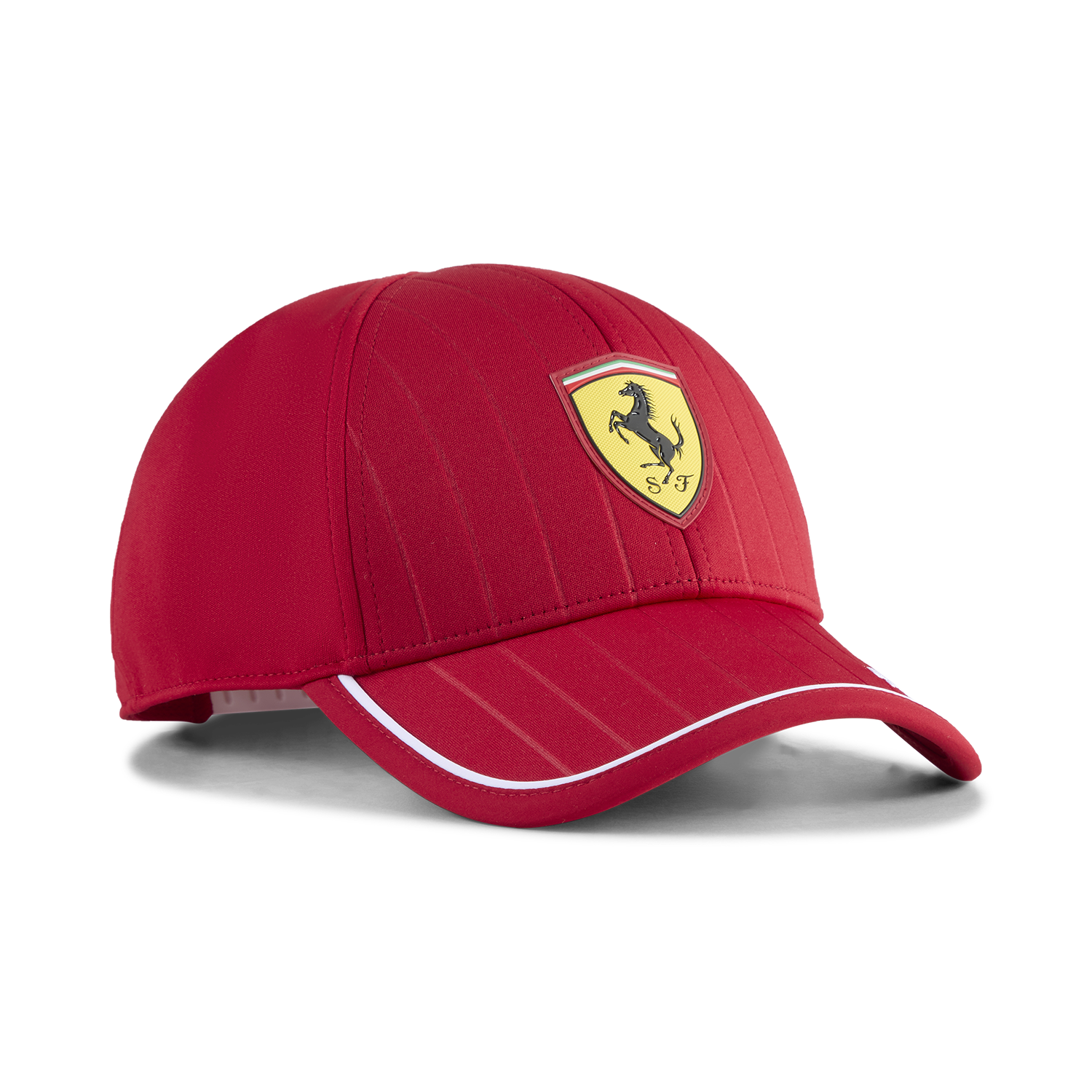 Made with at least 50% recycled materials.  Replica version of the 2025 cap worn by Ferrari Team members. Low curve cap. Heat debossed tonal graphic on crown. Premium TPU Ferrari logo. PUMA branding details. 100% Polyester